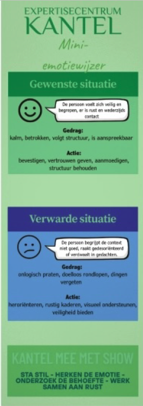 Op basis van vier herkenbare situaties – verward, apathisch, agressief en gewenst gedrag – geeft de Emotiewijzer helder inzicht in wat je ziet én wat je op dat moment het best kunt doen.